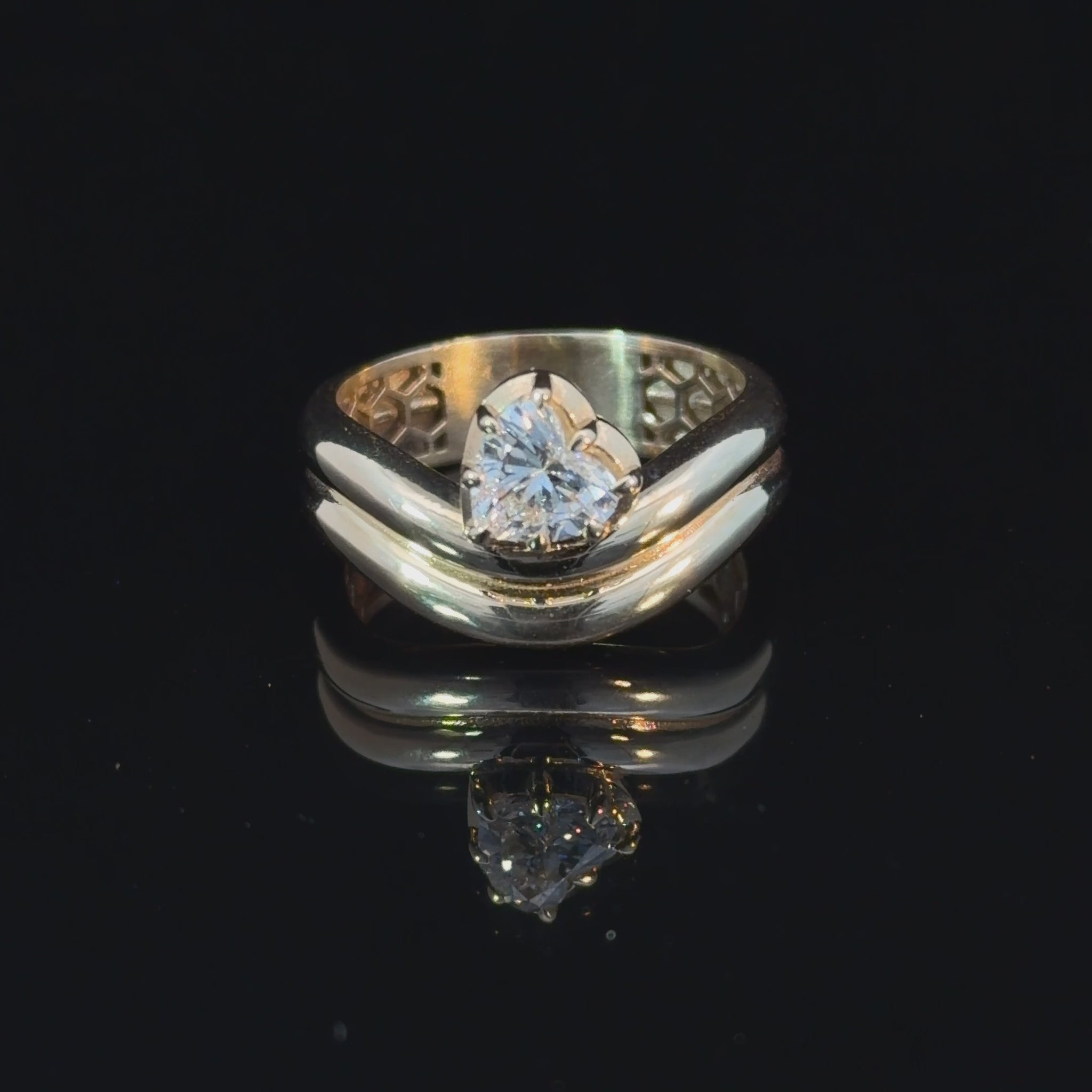 A modern declaration of love. This elegant ring features a brilliant heart-shaped diamond set at the center of a bold yet refined 14K gold band. Its sculptural design blends timeless romance with contemporary sophistication, creating a perfect balance between strength and sentiment.