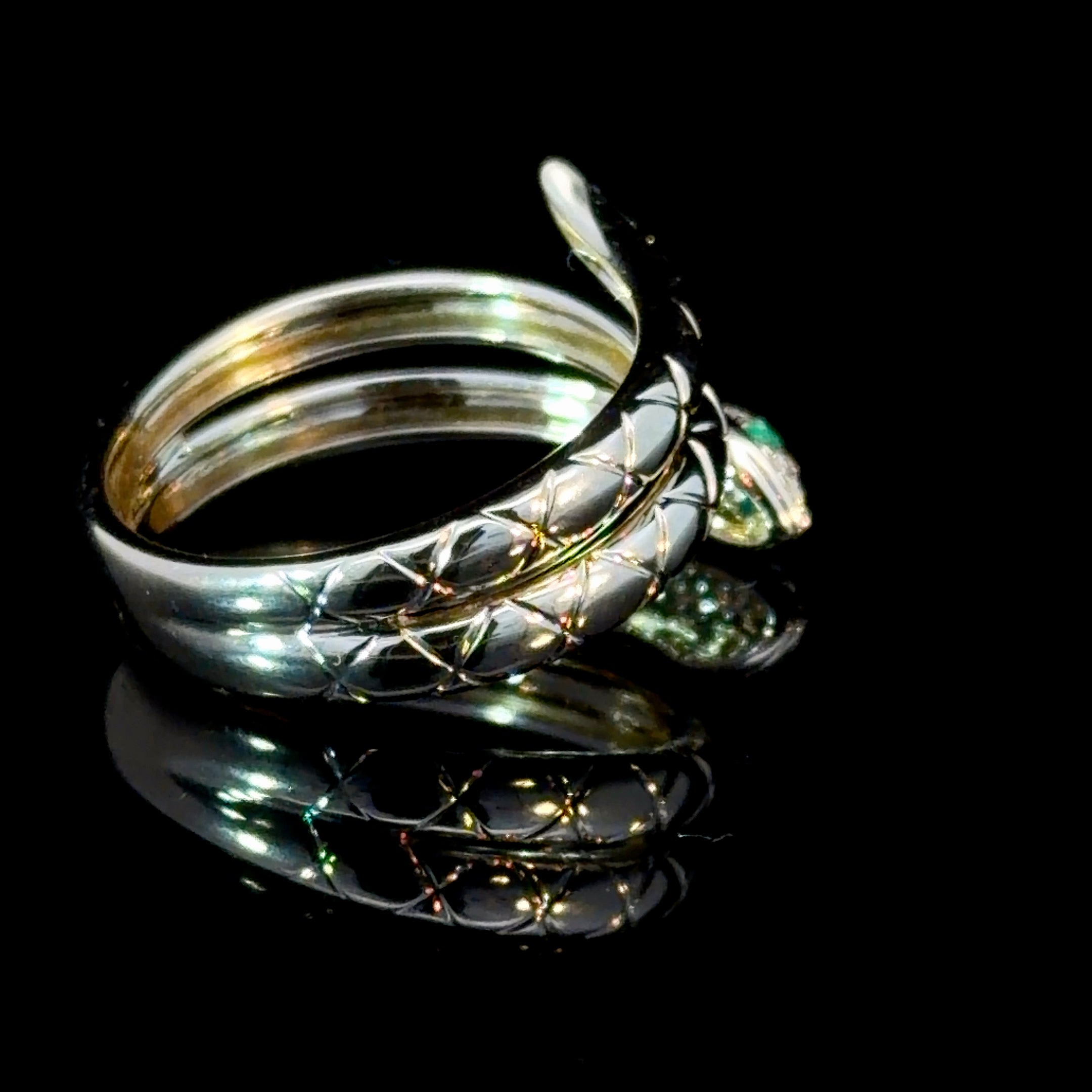 14K Gold Emerald Snake Ring – Diamond Pavé Serpent Wrap Ring