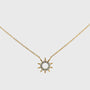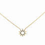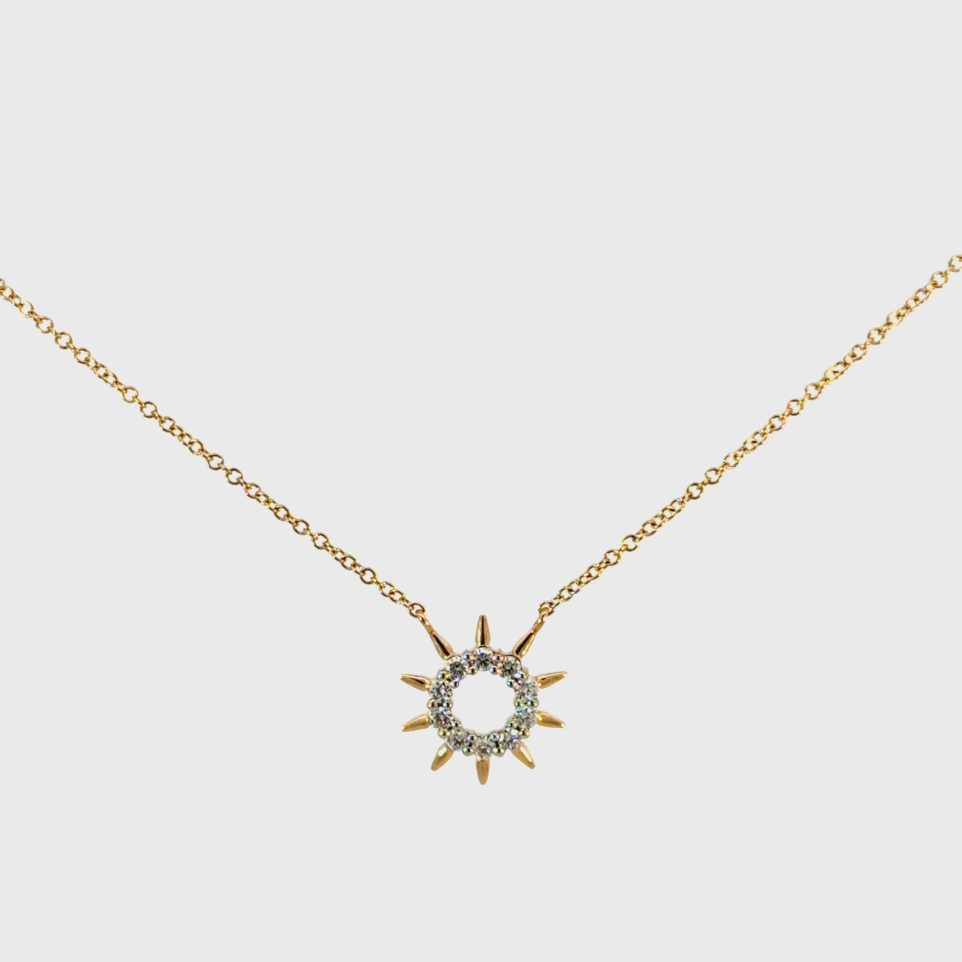 A radiant 14K gold sunburst necklace featuring a natural diamond pavé circle and golden rays. Symbolic, bright, and perfect for everyday.