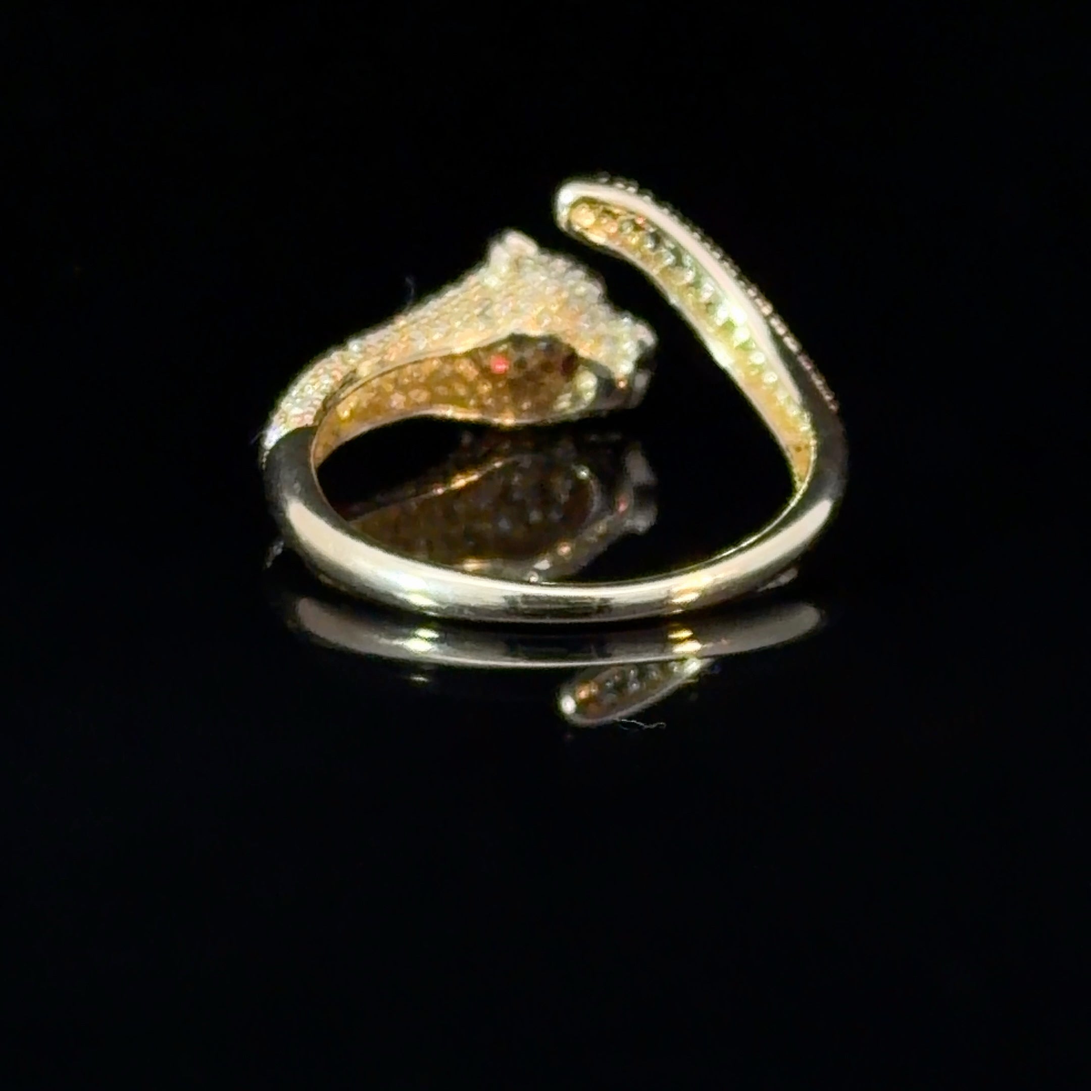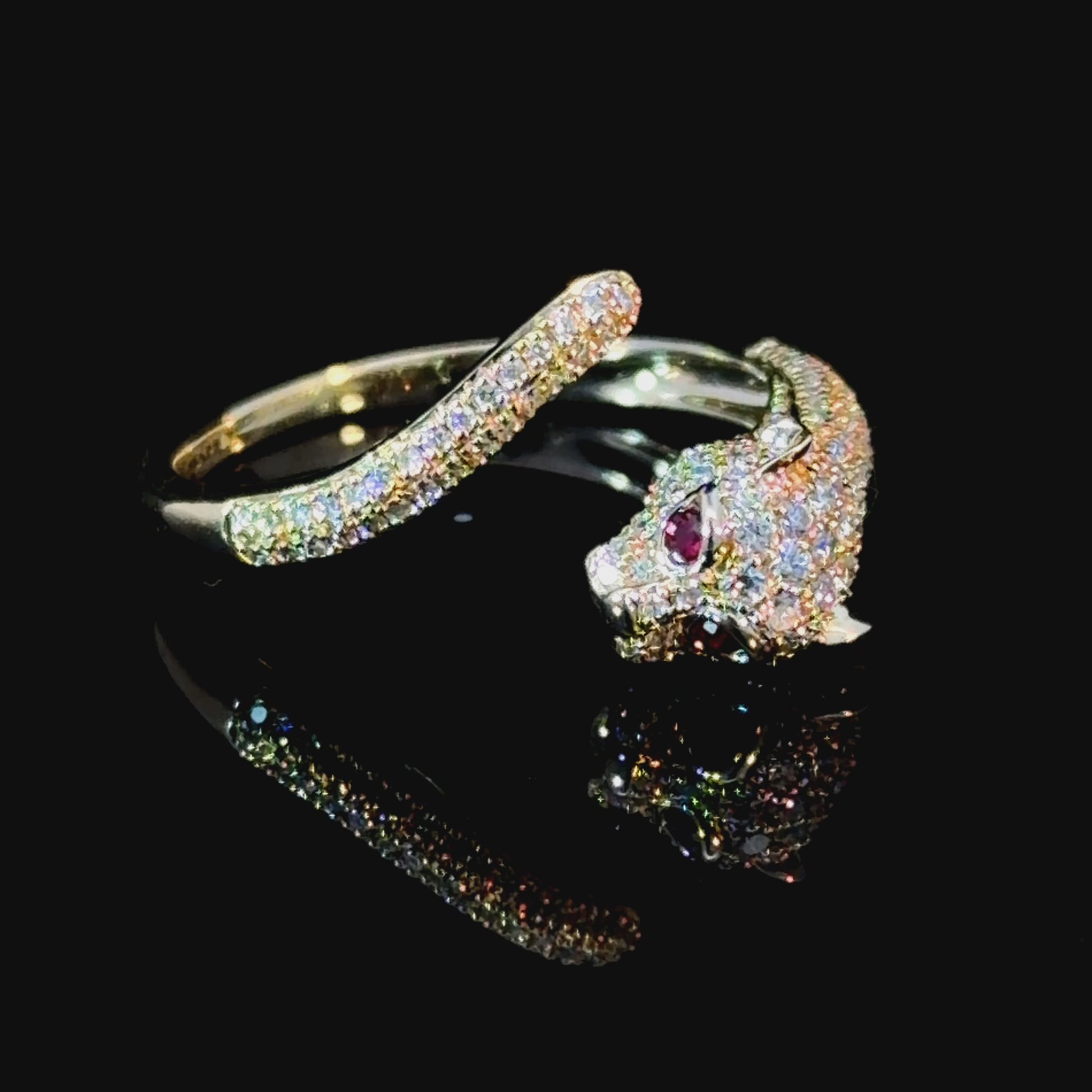 14k Gold Ruby Panther Ring - Diamond Pavé Wrap Ring