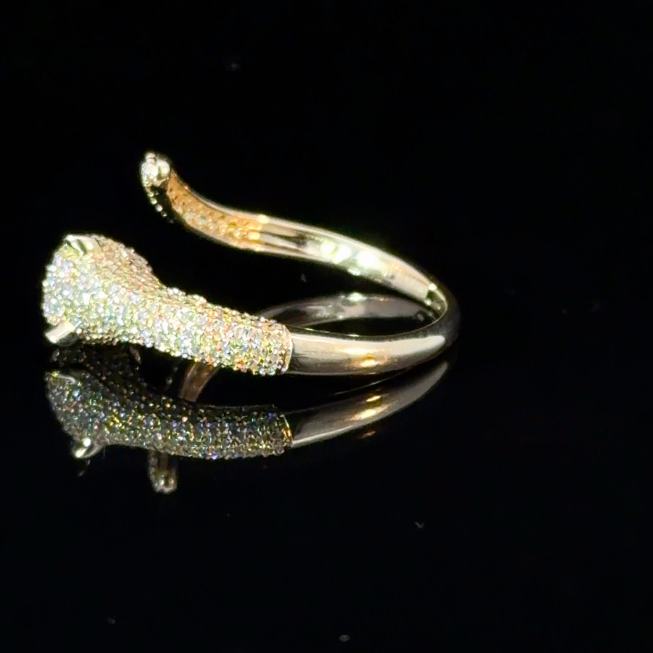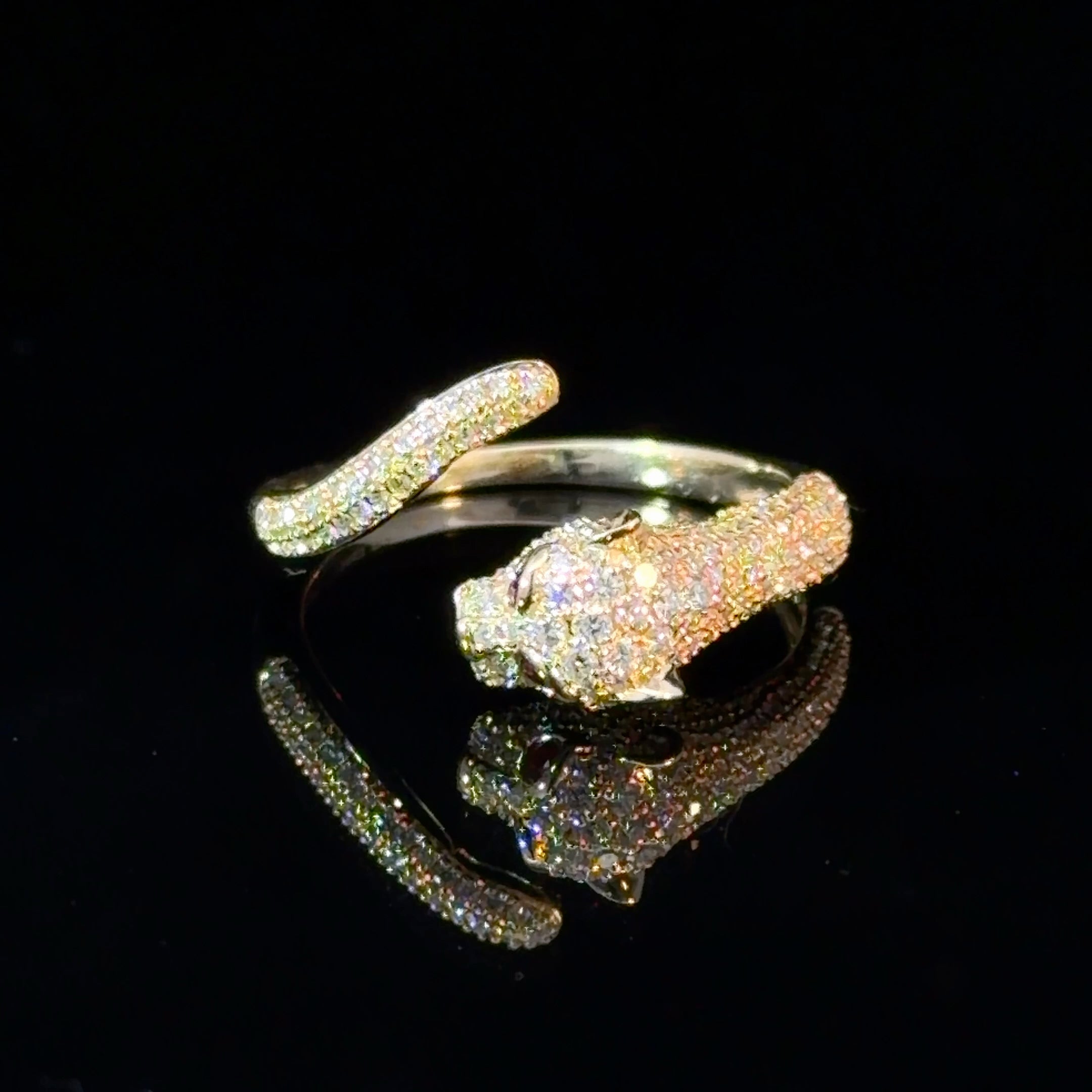 Crafted in solid 14k gold, the ring curves naturally around the finger, delivering a bold silhouette that blends fine craftsmanship with symbolic strength. The panther—known for its confidence, mystery, and grace—makes this piece a standout in any fine-jewelry collection.