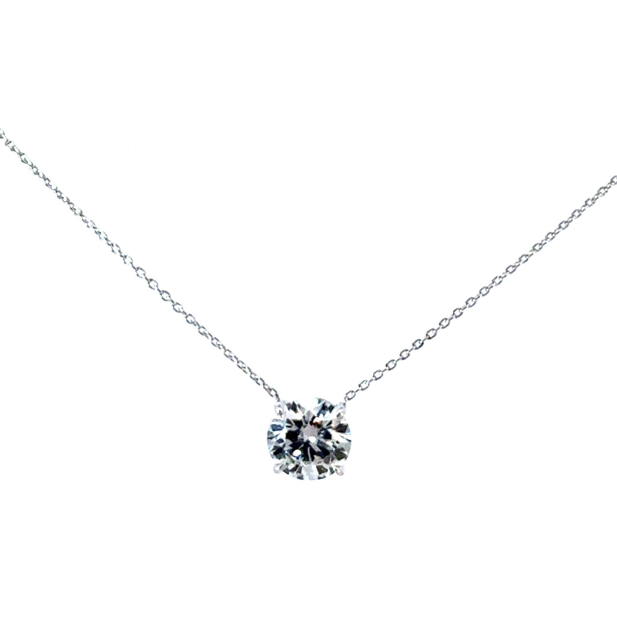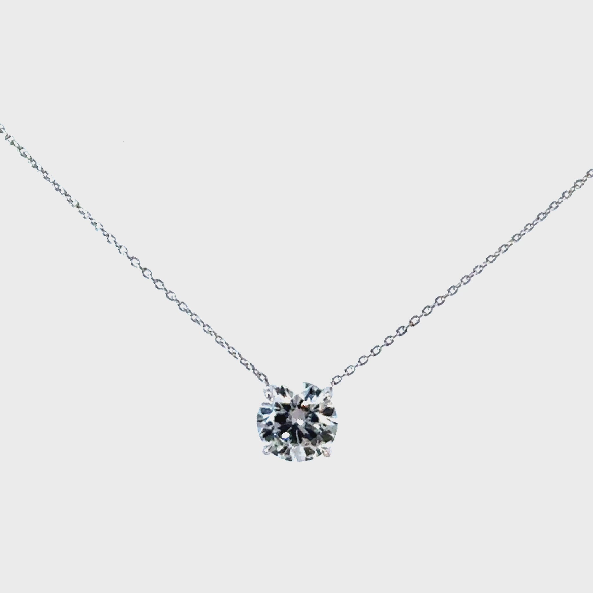 This elegant 2.00carat lab-grown diamond solitaire necklace is crafted in polished 14K white gold, featuring a brilliant round diamond suspended from a delicate chain for a timeless, minimalist look.