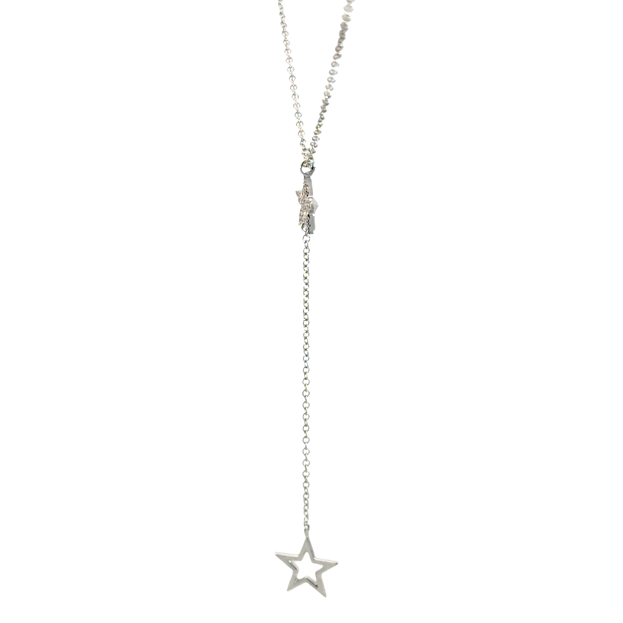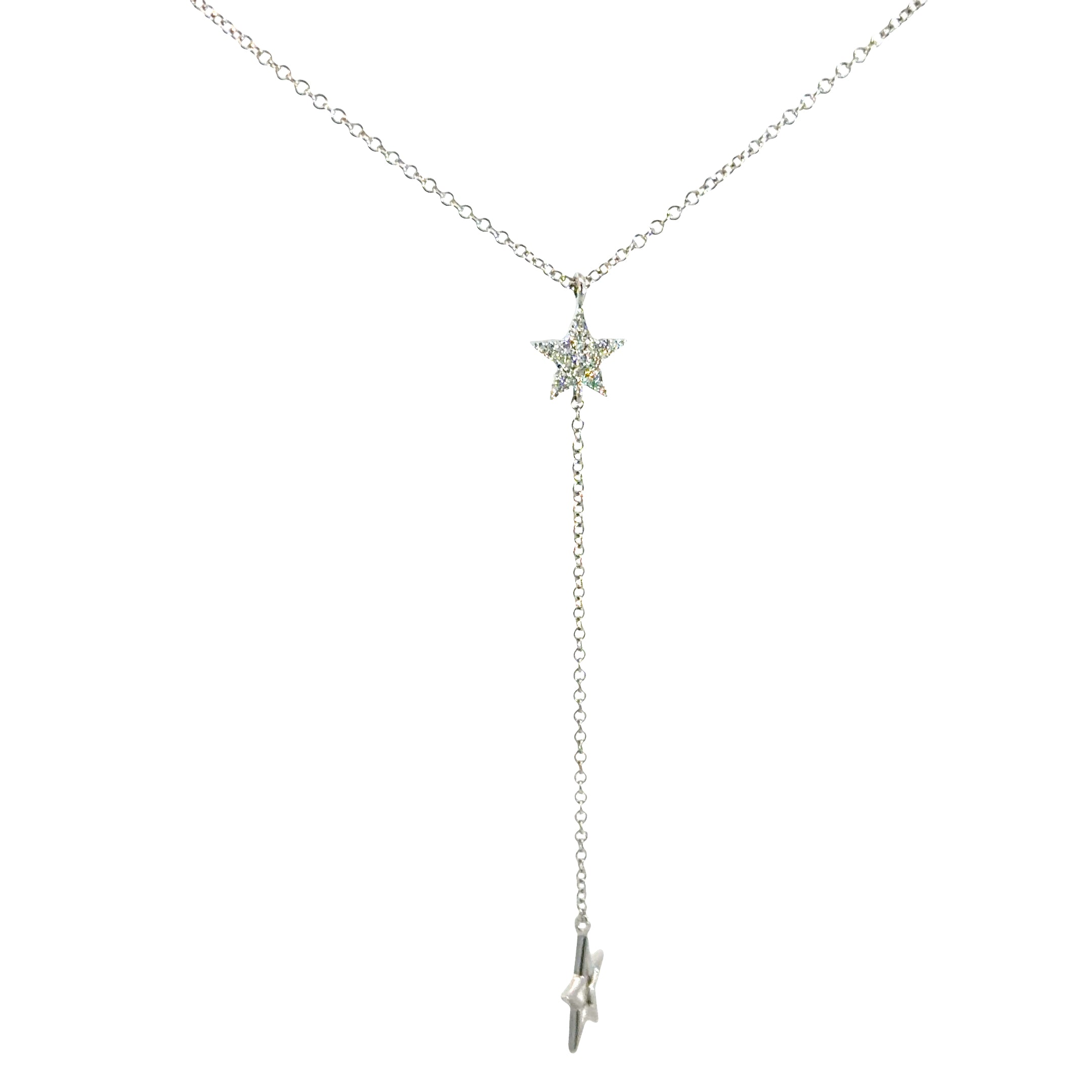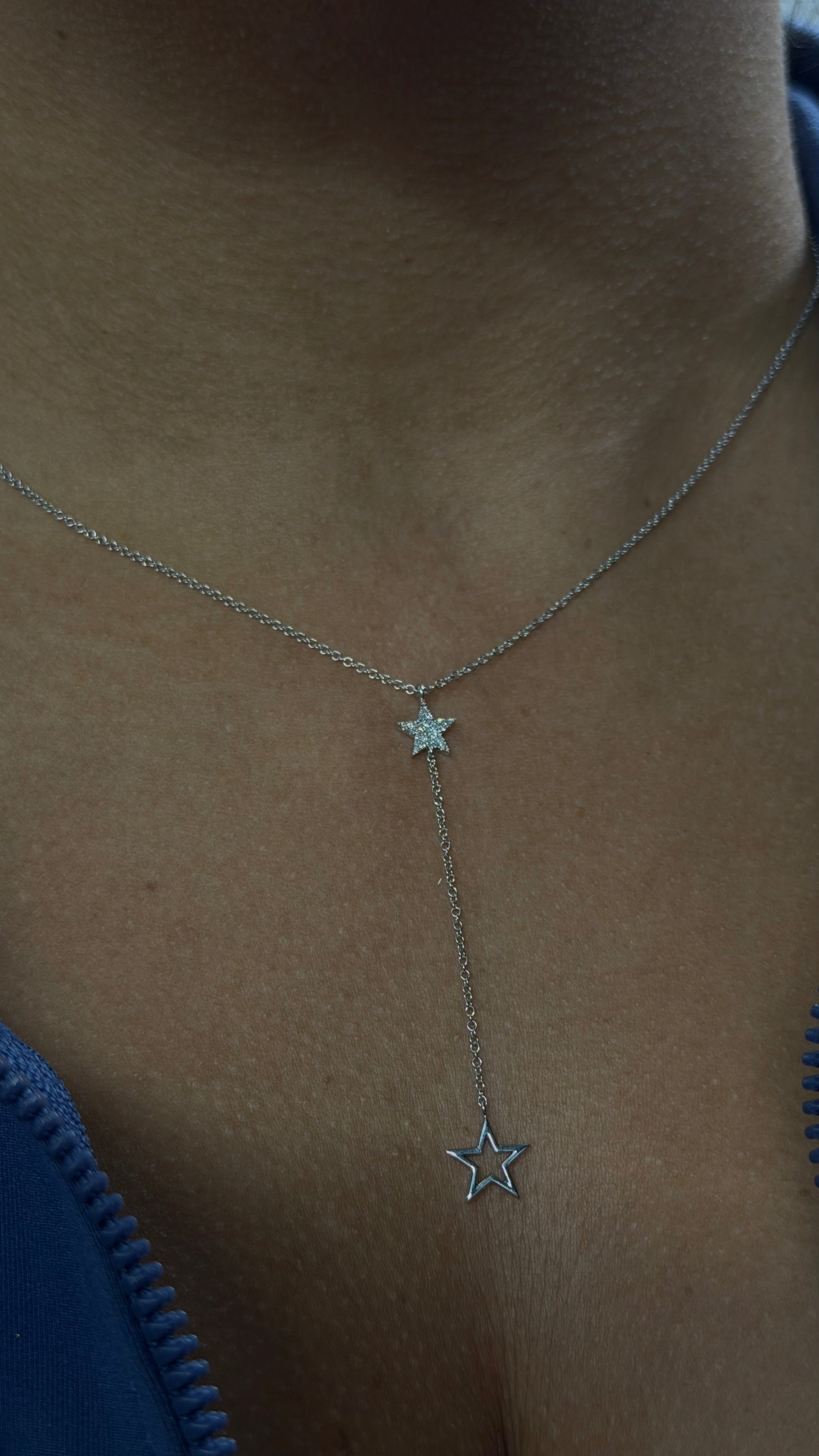 Elevate your everyday look with our Starlight Drop Necklace, crafted in luminous 14K solid gold and accented with natural diamonds. Featuring a sparkling star centerpiece and a delicate cascading chain with a floating star charm, this design creates a graceful Y-shaped silhouette that flatters every neckline.