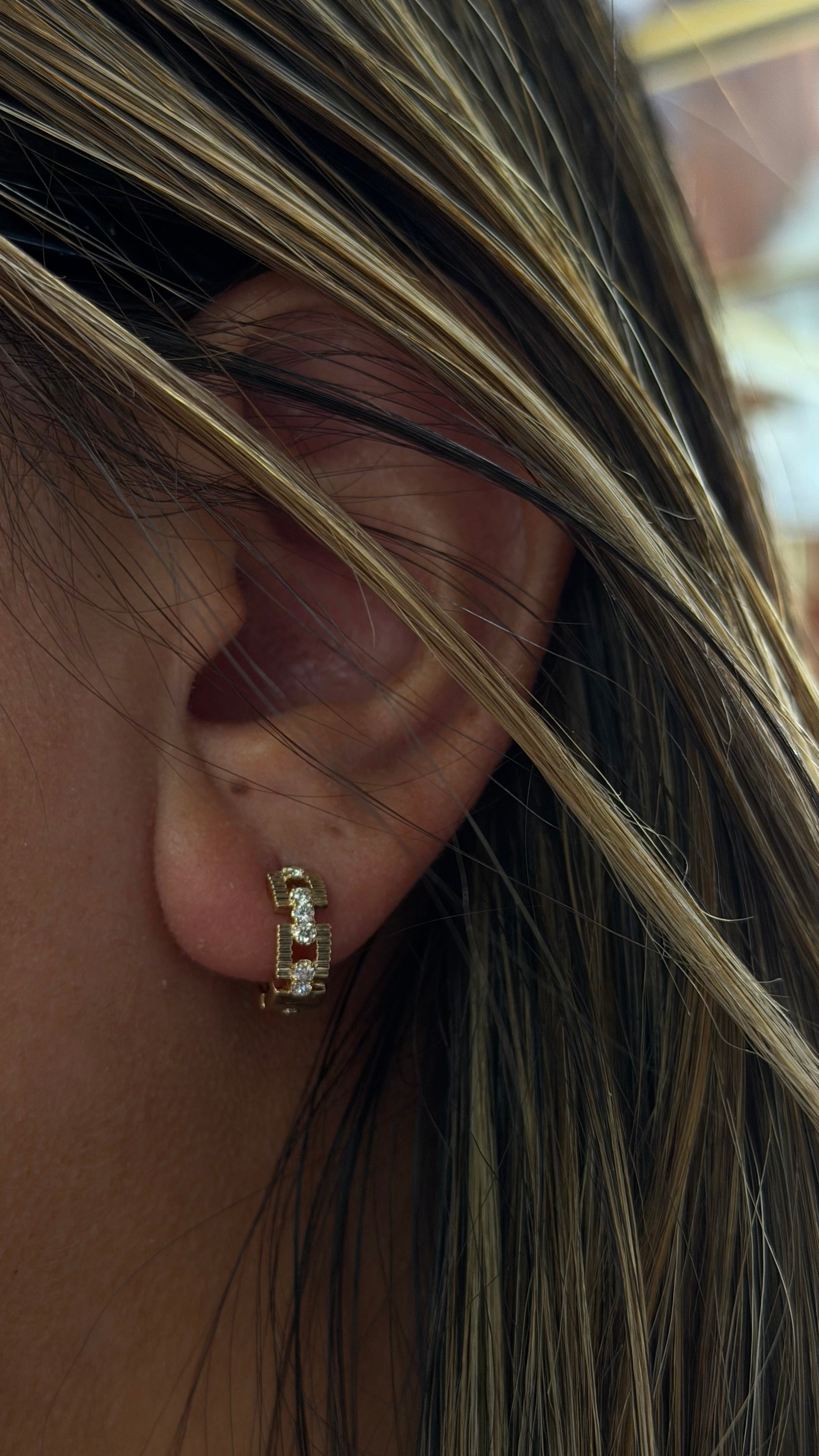 Minimal yet distinctive, feature a sculpted 14K gold design accented with a vertical line of diamonds. Their refined texture and clean silhouette make them perfect for stacking or wearing alone for a subtle, elevated statement.
